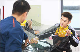 太阳膜种类质量辨别、太阳膜工具使用、侧挡贴膜技术、有弧度侧挡烤膜技术、三角贴膜技术、刀工的练习、贴膜环境要求前后挡干烤技术、前后挡湿烤技术、太阳膜收边技术、裁膜的技术、样板裁剪技术、烤枪使用。