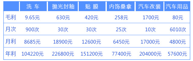漆面打蜡、全车抛光、发动机舱清洗镀膜、汽车镀晶、液体玻璃、汽车内饰清洗、真皮座椅清洁保养、汽车划痕处理、臭氧消毒、镀铬件清洁、车漆氧化层还原处理、车漆沥青的清洁、汽车轮毂清洁护理、轮胎清洗上光、桃木饰件护理、汽车桑拿、塑料件及橡胶条翻新、玻璃上光护理、整车去污、大灯翻新。