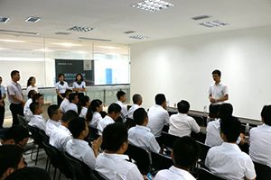 上午八点半,成都万通教师考察团顺利抵达位于四川崇州的成都中鑫海汽车服务有限公司,该司人事行政总经理马总以及各4S店工作人员热情接待了来自成都万通的老师们,在他们的带领下,老师们分组参观了中鑫海各店的展厅和维修车间,全面了解不同汽车品牌的文化底蕴、销售流程以及维修保养的整个工艺流程。