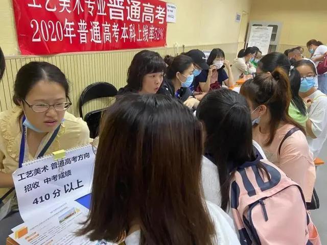 礼仪职中招生咨询处已经座无虚席,家长学生们都排着队咨询报名,希望能够顺利报读。