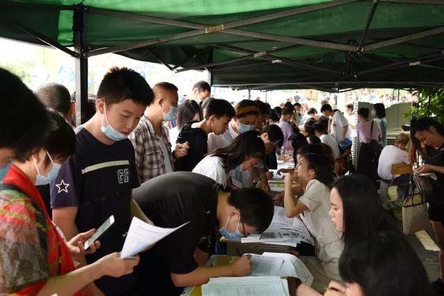 你以为这是交易大厅?其实这是在财贸职高招生处,中考成绩公布第二天,家长、学生们争先前往咨询报名。