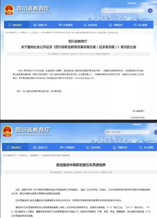 四川省《关于推进中高职衔接五年贯通培养工作的通知》等职业教育的利好文件也相继出台。