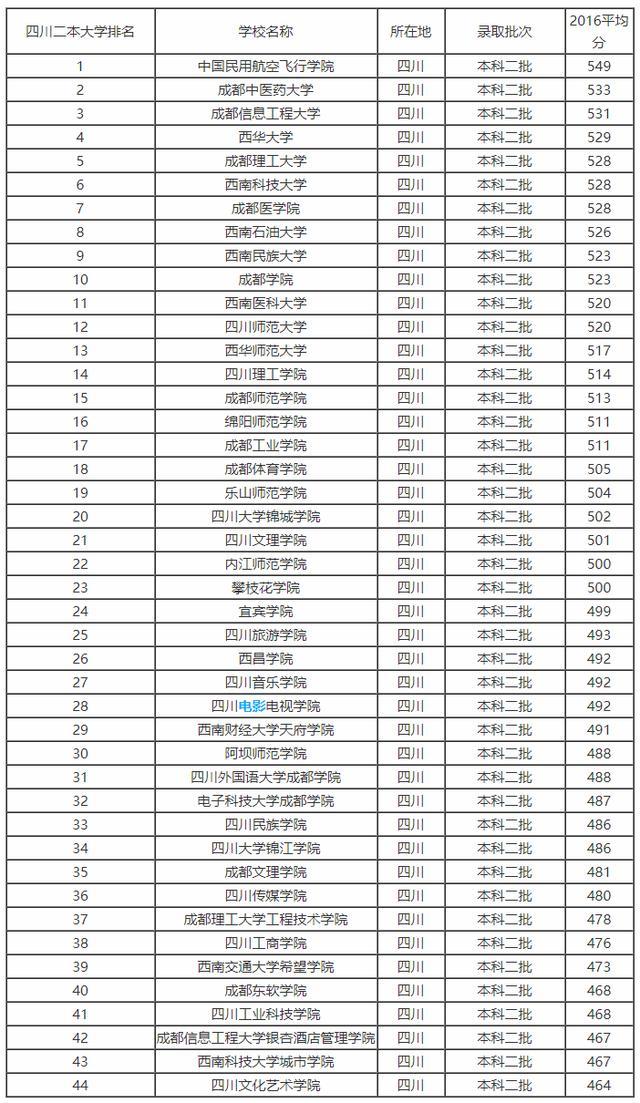 2、四川省二本院校排行榜