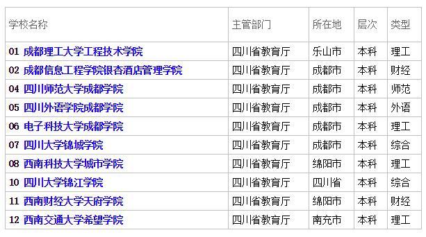 四川三本院校排行