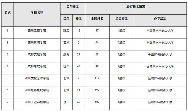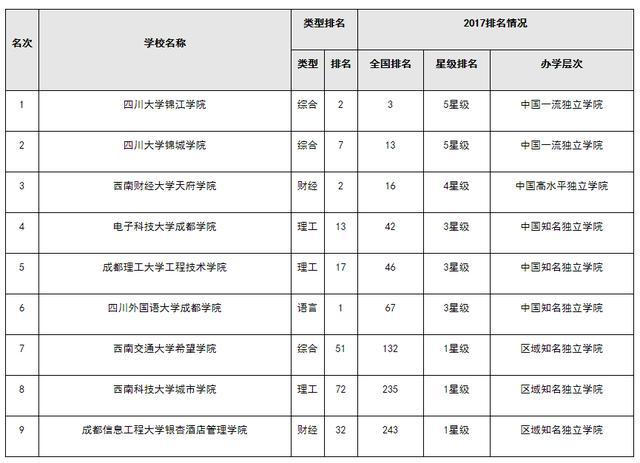 2017四川省独立学院综合实力排行榜