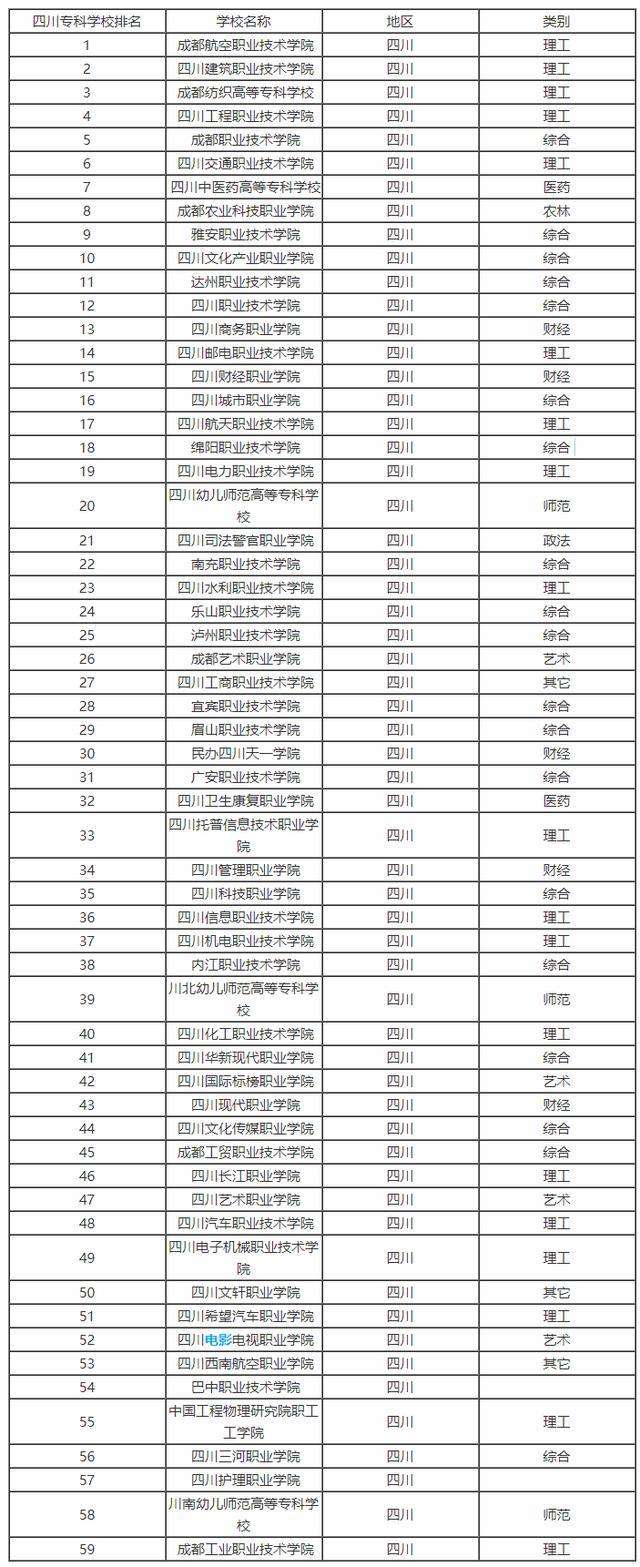四川专科院校排行