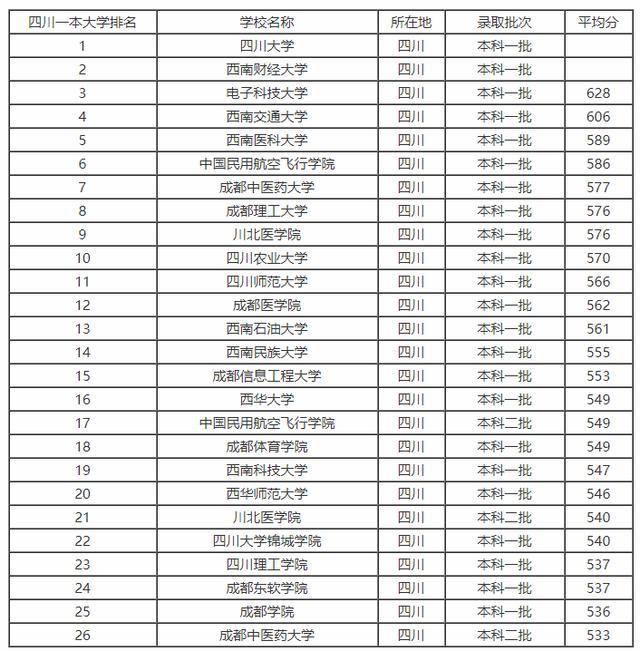1、四川省一本院校排行榜