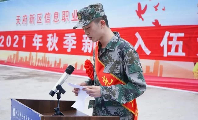 天府新区信息职业学院成立的国防教育学院,建立起了优质兵员输送蓄水池。国防教育学院学生除了平常文化课专业课的学习以外,还通过军事训练和思想教育,使学生们的军事素质得到了提高,参军意愿得到巩固,成为参军入伍学生的加强课,让从天信走出的每一名新兵都有过硬的基本素质。