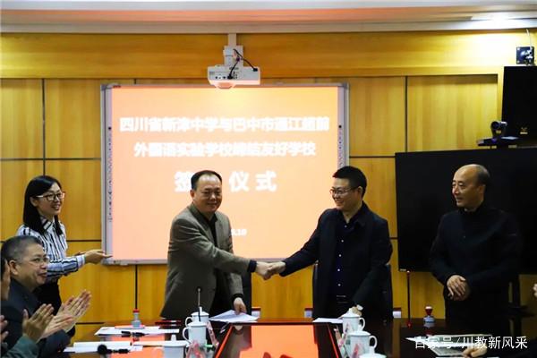 2020年10月10日上午,四川省新津中学与通江超前外国语实验学校缔结友好学校的签约仪式在四川省新津中学D212会议室成功举行。
