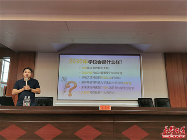 典礼后,湖南省教育厅信息技术应用能力提升工程办公室主任杨予平作《湖南省能力提升工程2.0实施探索》的专题讲座,长郡双语实验中学教科室主任崔应忠作《提升工程2.0背景下信息技术与学科教学融合——以微能力点考核为例》专题讲座。