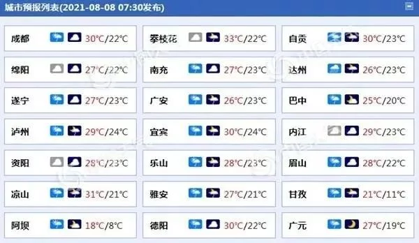 不仅如此,四川省地质灾害指挥部办公室根据四川省地质环境条件,结合四川省气象台天气预报情况,分别发布地灾气象风险橙色预警、黄色预警:8月8日,共有2市7个县(市、区)进入橙色预警范围;12市(州)47个县(市、区)进入黄色预警范围,其中内江进入黄色预警范围。