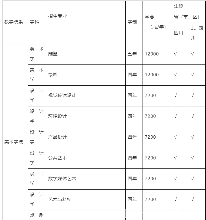 3、招收非四川考生的广播电视编导、戏剧影视文学、艺术史论、艺术管理、摄影、影视摄影与制作、新媒体艺术7个专业,协商生源地省级招生考试机构安排在普通类本科批次按高考文化课成绩录取,考生是否参加省级该类专业统考按所在省(市、区)的省级考试机构的有关规定执行。