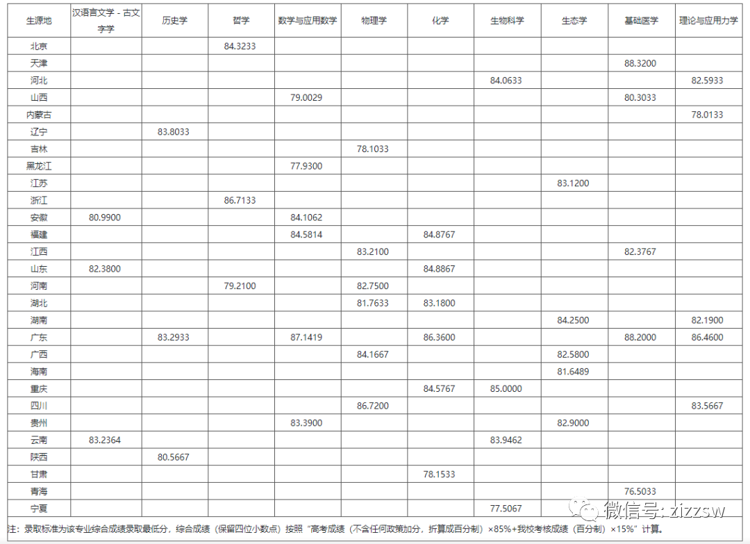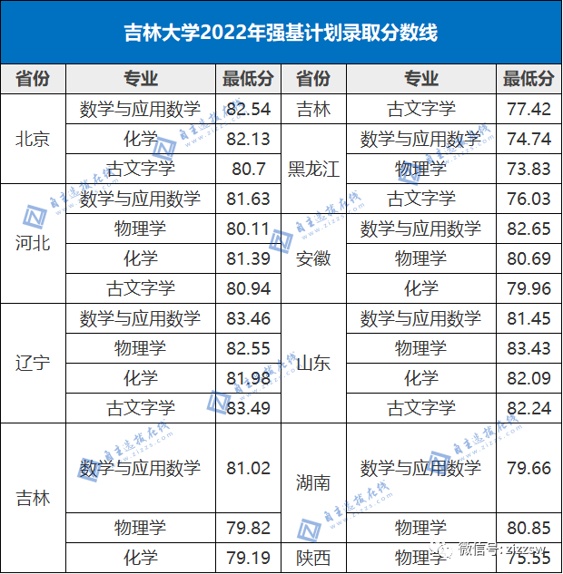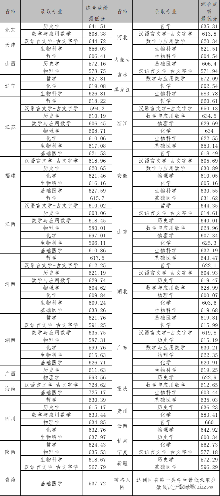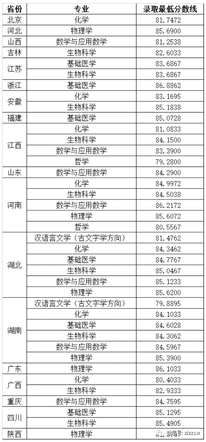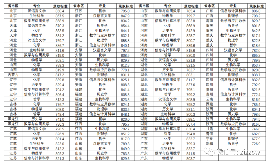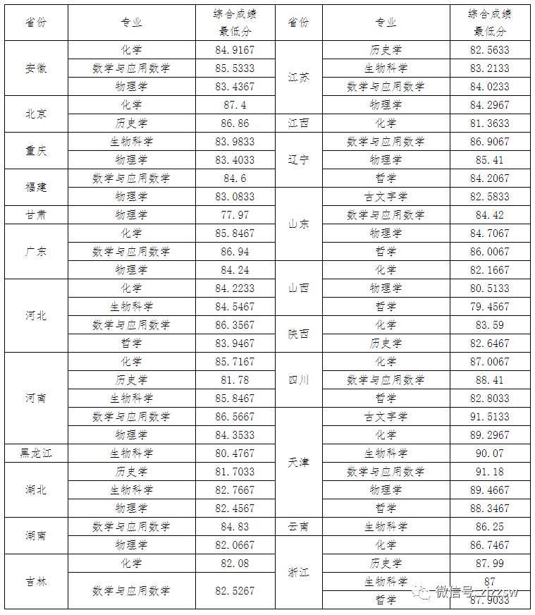 我校已完成2022年强基计划测试工作,根据教育部和我校招生简章要求,经学校招生工作领导小组审定,现将各省份分专业录取最低综合成绩公布如下: