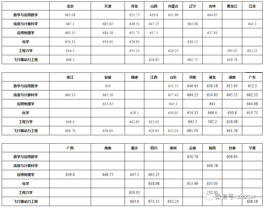 现将国防科技大学2022年强基计划7省份综合成绩录取线公告如下: