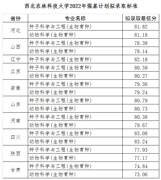 按照《中国农业大学2022年强基计划招生简章》,根据考生高考文化成绩(不含任何政策加分)和校测成绩,结合我校分省分专业招生计划数,经学校普通本科招生工作领导小组审核并确定各省各专业拟录取综合成绩分数线,公示如下。