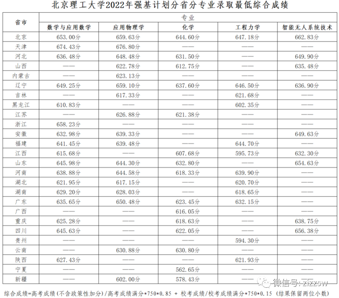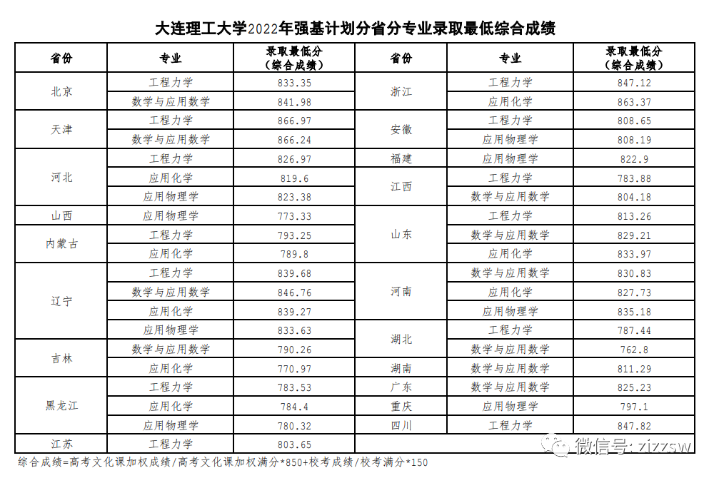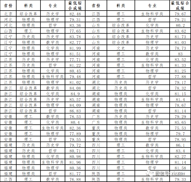 我校已完成2022年强基计划学校考核工作,根据教育部和我校招生简章要求,现将各省份录取最低综合成绩公布如下: