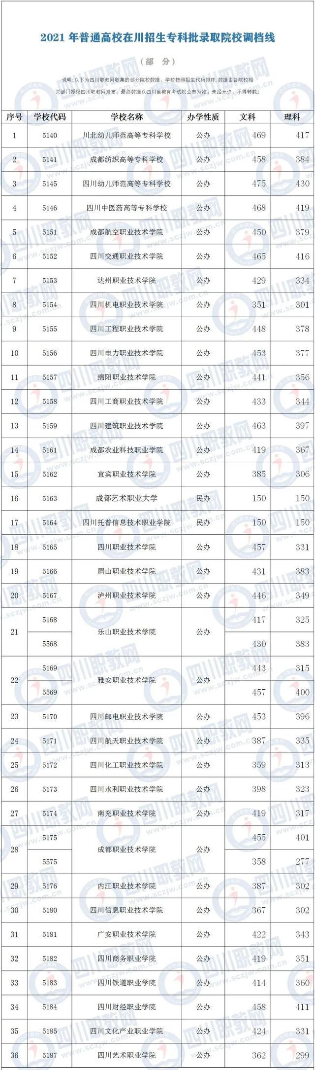 说明:以下为四川职教网收集的各院校数据,数据由各院校相关部门授权四川职教网发布,以招生代码排序,最终数据以四川省教育考试院公布为准。未经允许,不得转载!