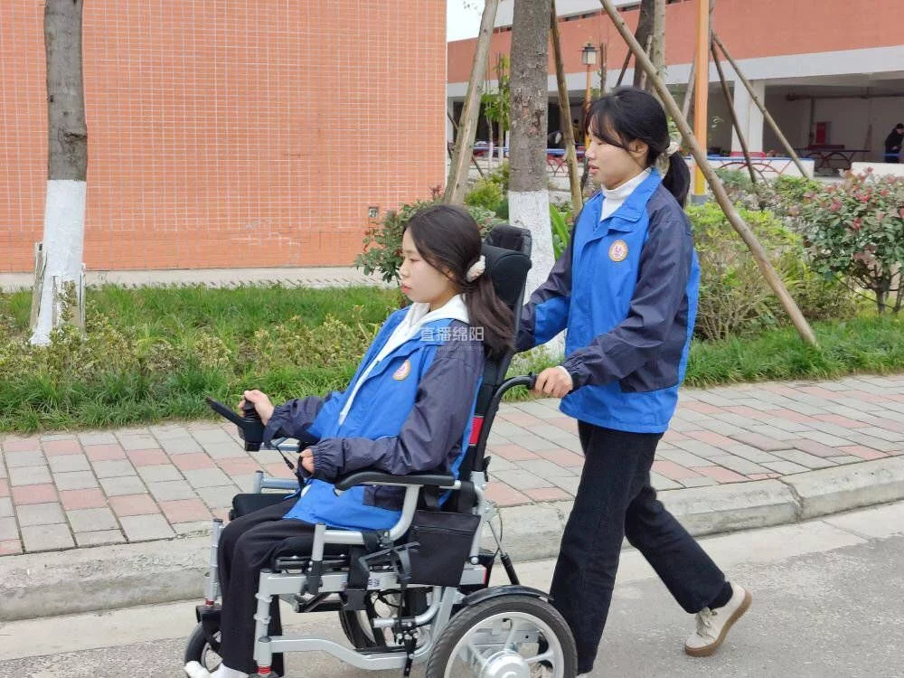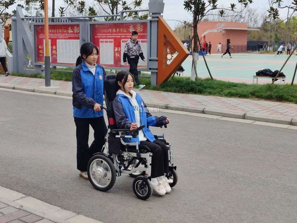 陈晨说,她们当时就读的是三台职业技术学校城西校区,一年后搬到新校区。2021年上半年,学校招就处蒋德文主任出资3600余元,为她购买了一张电动轮椅。同时,学校也通过爱心企业出资,修建了无障碍通道。