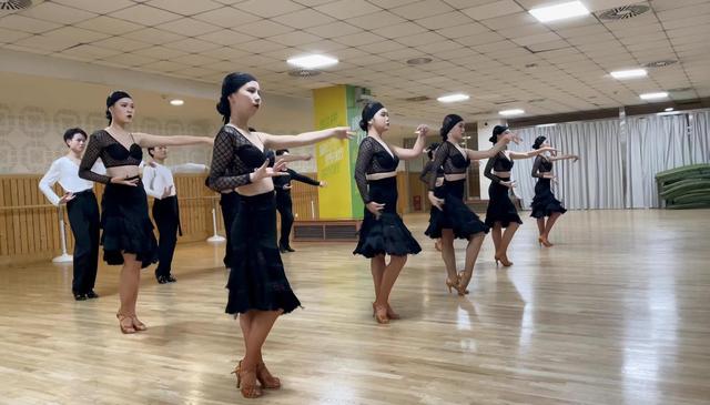 最近,四川体育职业学院2021级国际标准舞专业班的同学正在进行返校后恢复性练习,获得北京体育舞蹈大赛A组拉丁舞冠军的徐好老师正在教拉丁舞中的伦巴舞步,耐心指导和悉数纠正同学们的舞蹈动作。同学们将每一次的伸展和面部表情尽量做到位,把伦巴的柔美舞态,婀娜步法展现出来。