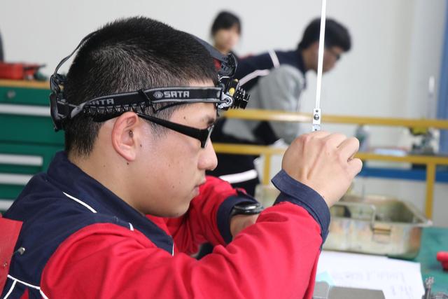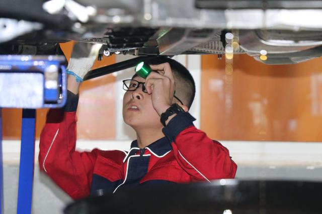 为了培养学生的匠心,在校期间学生们要通过汽车维护保养、发动机拆装、底盘拆装、钳工、四轮定位、整车装配及检测等10余项培训考试。