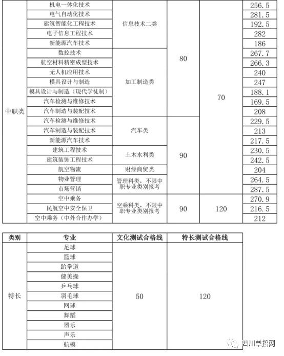 (二)中职类:文化成绩控制线为85分,专业技能测试/职业适应性测试成绩控制线为70分。