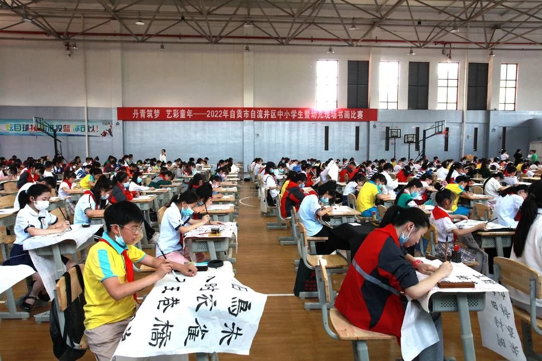 当天,自流井区近600名中小学幼儿园选手代表,分批次参加丹青筑梦 艺彩童年中小学生暨幼儿现场书画比赛。在活动现场飞扬思绪、翰墨飘香、切磋技艺,展示艺术教育的丰硕成果,送上对党和祖国的感恩及祝福之情。