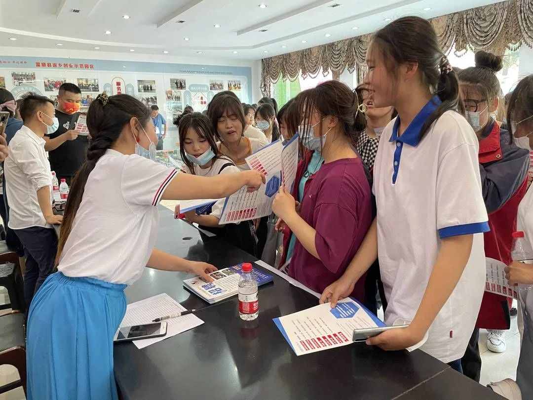 5月7日,自贡市富顺县举行展望未来,青春起航2022年职校毕业生专场招聘活动。近100名富顺县职业技术学校缝纫专业学生走进富顺纺织服装产业园区,开展公共服务校企对接,10家园区企业提供就业岗位200余个,现场登记意向人员共71人次。