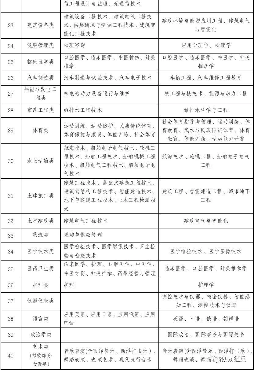 今年我省共计划招收航空航天、机电设备、机械设计制造、自动化、计算机、电子信息、通信等40个专业大类,详细专业分布见附表。