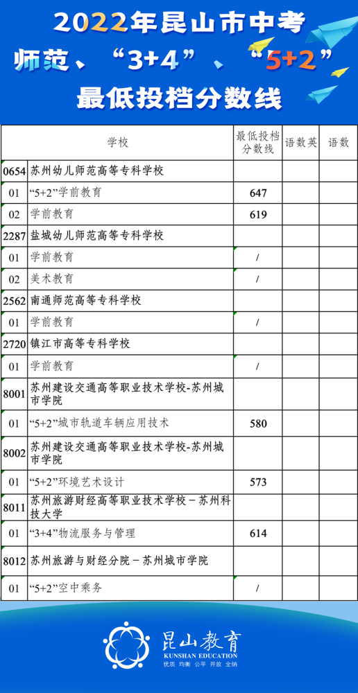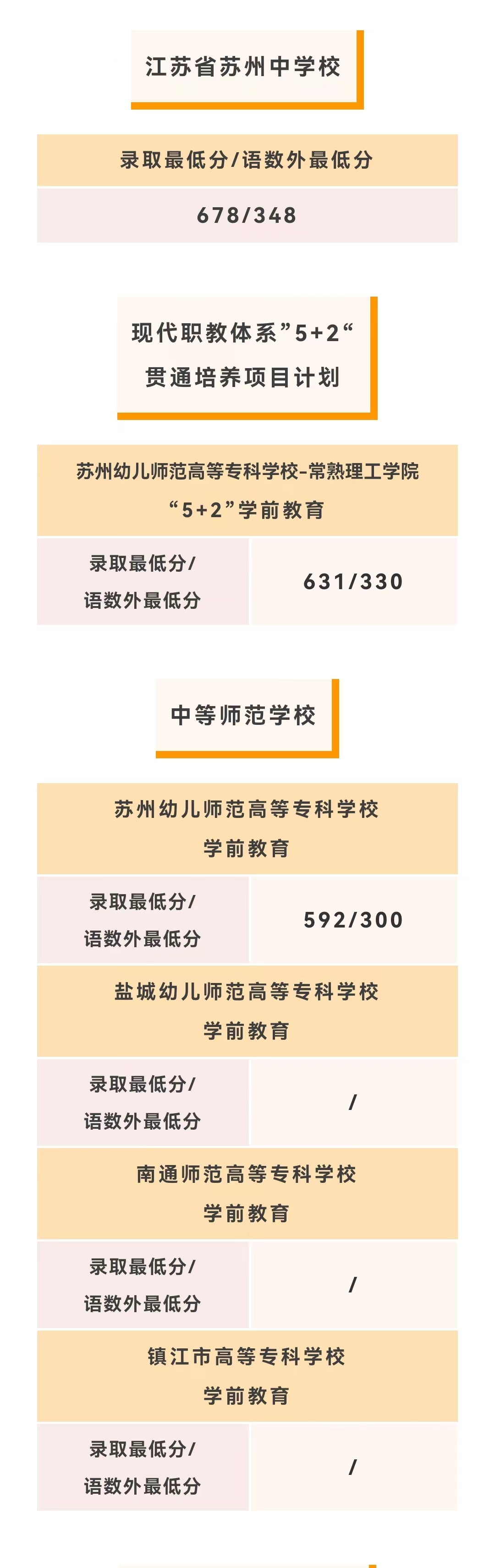 苏州幼师 学前教育(5年制) 592分(语数外三门成绩不低于308分,面试合格)