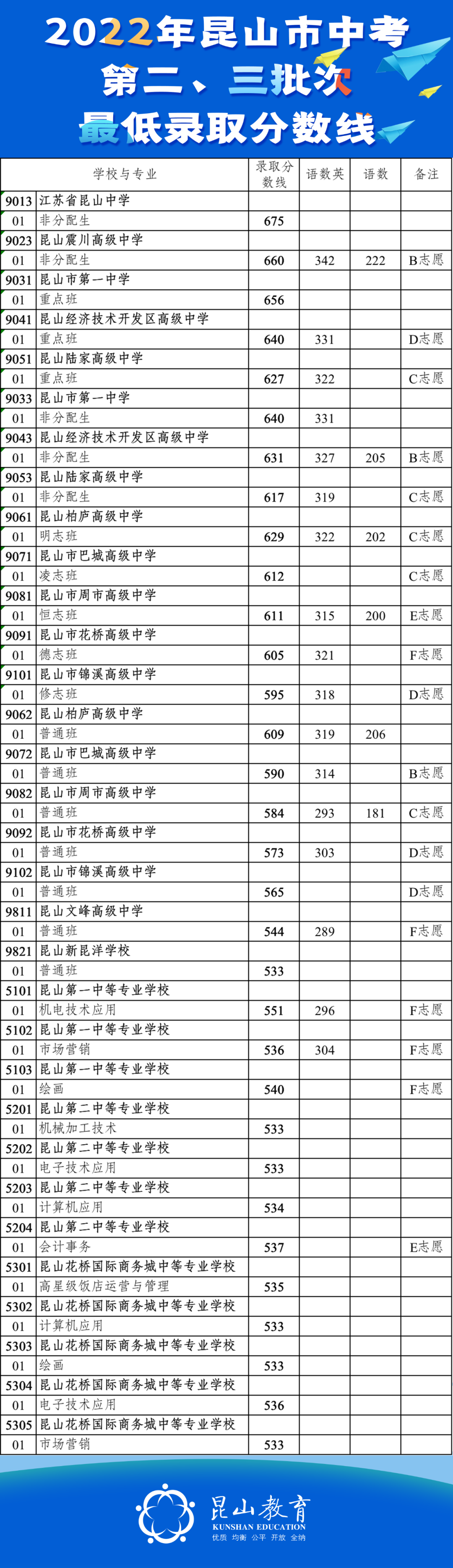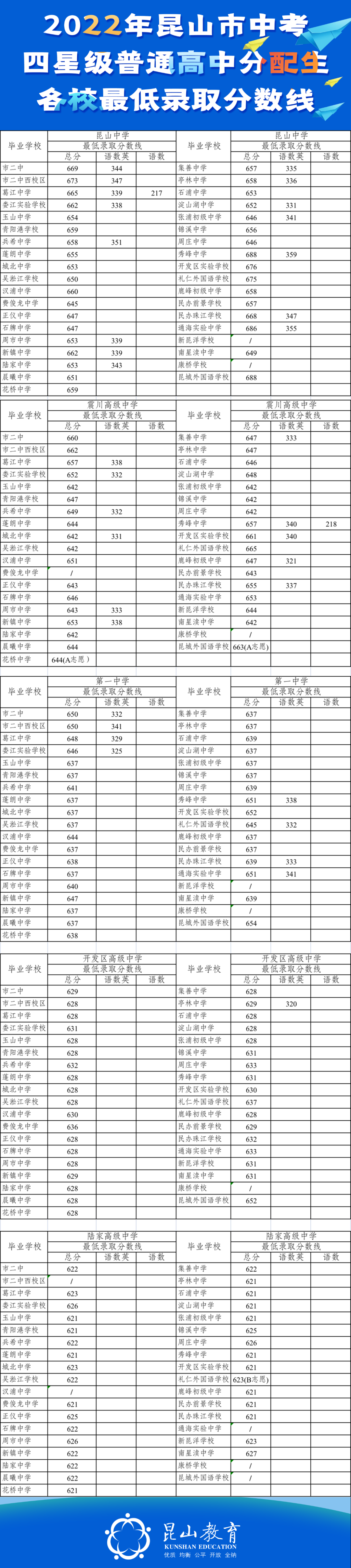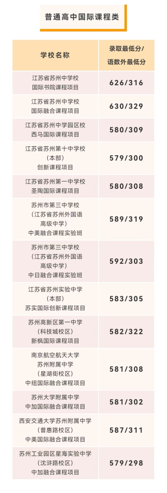 2022年苏州市区高中段招生提前录取批次各校录取最低分公布如下: