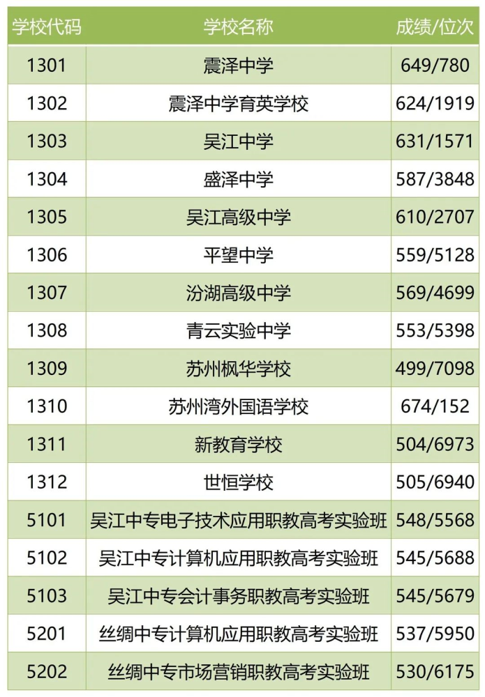 甪直高级中学 594分(语数外三门成绩不低于308分)