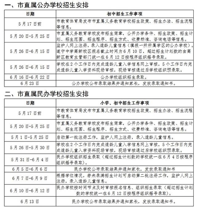 2022年市直属义务教育学校招生入学日程安排