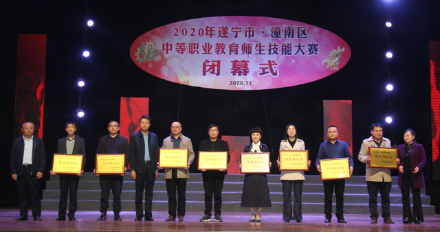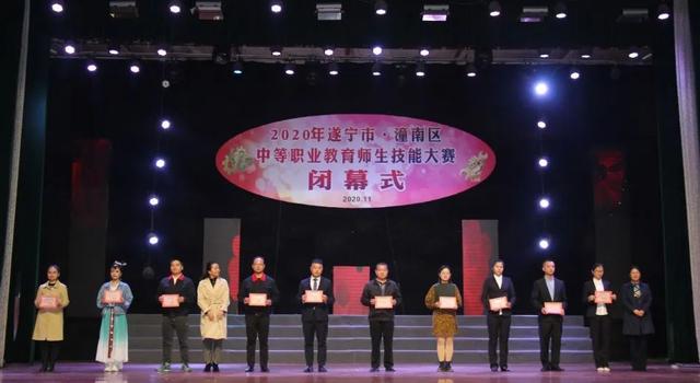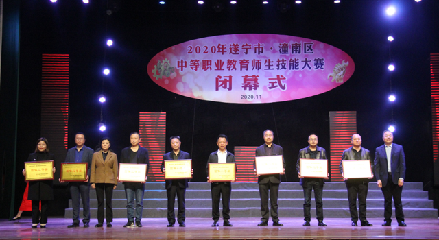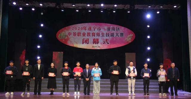 据悉,本届大赛由遂宁市教育和体育局、重庆市潼南区教育委员会主办,共设七个大类29个比赛项目,其中20个学生项目,9个教师项目,来自遂宁市和重庆市潼南区的14所中职学校,332名学生、59名教师参加了大赛。经过激烈角逐,产生了学生个人一、二、三等奖221人次;教师个人一、二、三等奖48人次;8个单位荣获优秀组织奖;优秀指导教师奖61人次;8所学校荣获团体奖。