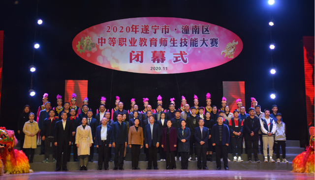 重庆市潼南区人大常委会副主任陈默,遂宁市人大常委会副主任施瑞昶,遂宁市人民政府副秘书长蒋晟,遂宁市人大教科文卫委主任李洁,遂宁市政协教科文卫委主任黎敏以及重庆市潼南区教委、遂宁市教育和体育局、市人社局、市总工会等相关领导出席活动,来自遂宁市和重庆市潼南区近400名师生以及部分企业代表参加了闭幕式。