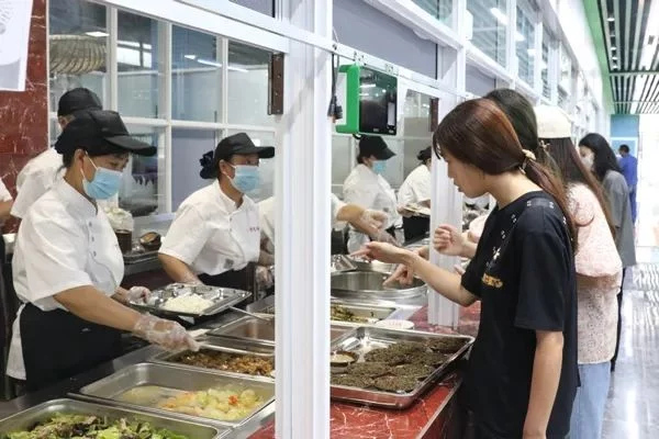 学生排队在食堂就餐