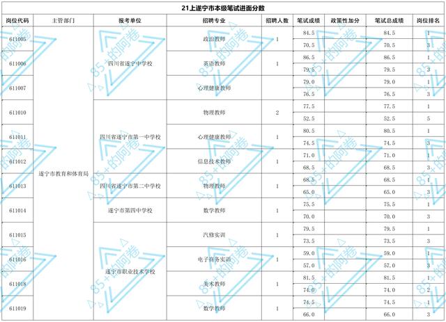 遂宁中学,英语教师,79.5,第三(笔试岗位排名)