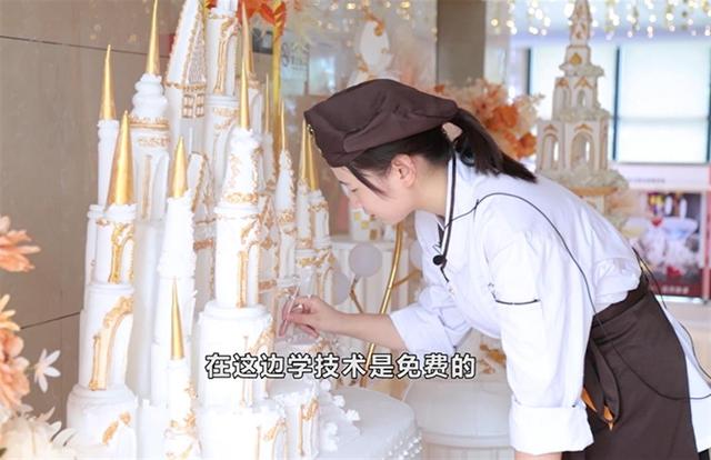 课堂上,老师们一对一教学,讲解蛋糕制作的发面关键技巧等理论知识,随后又让他们实操训练,如何和面、揉面,并进行烘焙。