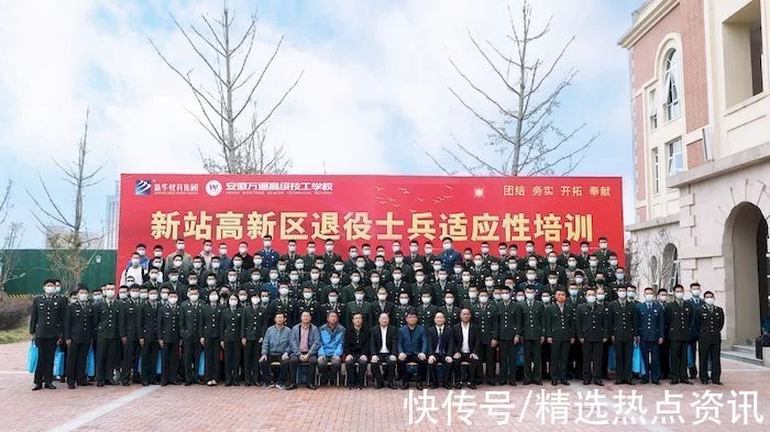 合肥新站高新区2021年度退役军人与领导们合影。新华教育集团供图