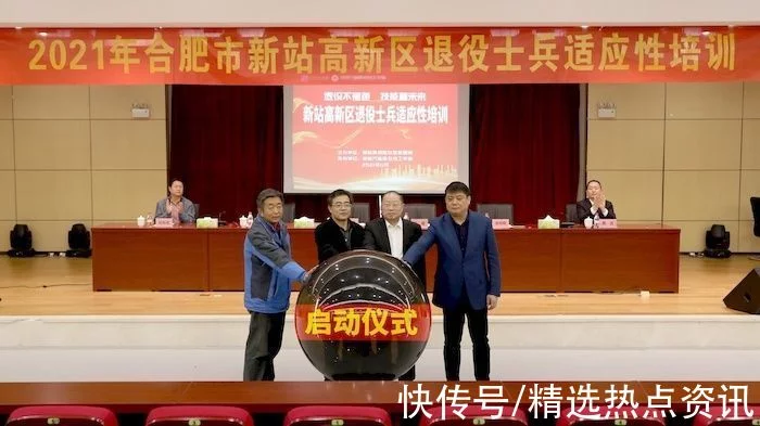 开班仪典礼,合肥市退役军人事务局党组成员、副局长方亮,新华教育集团副总裁汪俊,合肥市退役军人事务局思想政治和权益维护处处长陈保健,合肥市新站高新区社区管理局局长徐明刚触摸启动球,共同宣布本次退役军人适应性培训正式开班。