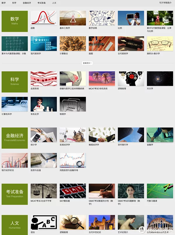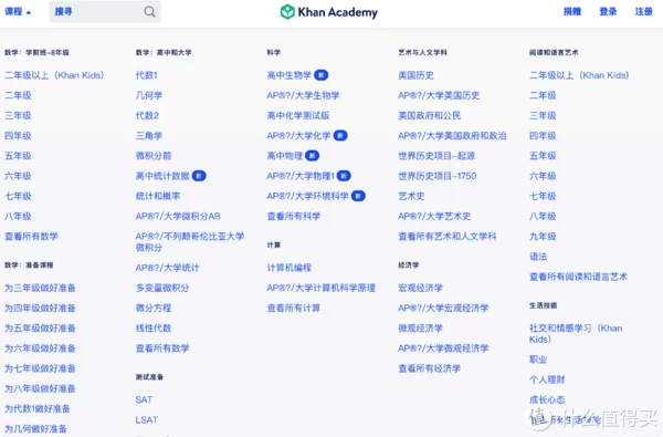 如果你觉得看英文吃力。那么部分课程内容,可以在网易公开课 - 可汗学院版块看到翻译好的版本。