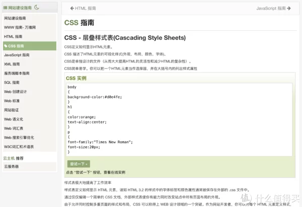 在教程里,点击「尝试一下」,可以查看在线实例,看到代码运行之后的样子。