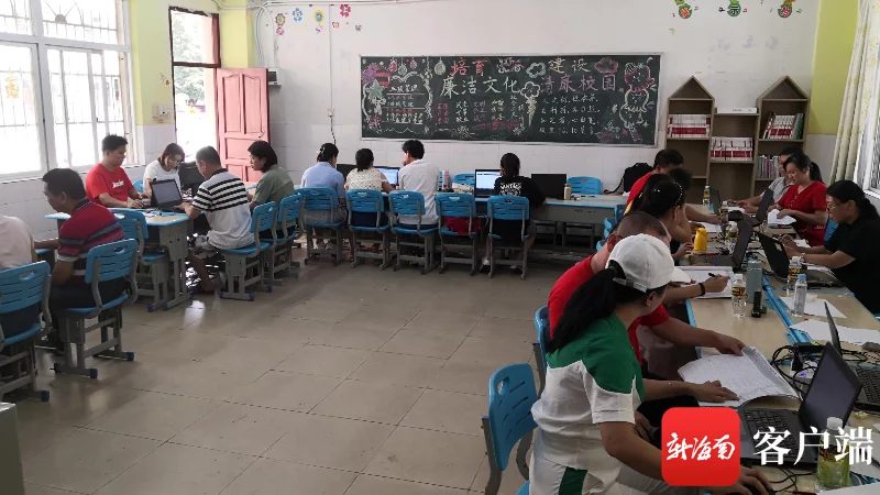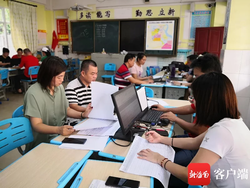 8月2日上午10时许,在海口琼山五小一间教室内,记者看到30名老师正在紧张而又认真地审核新生信息。