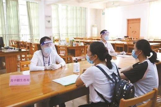 中考总成绩为A+的小葛与同学结伴来到集中报名点。小葛表示,中考结束后,他就开始收集与高中报名有关的信息,并向学校老师和学长学姐请教。