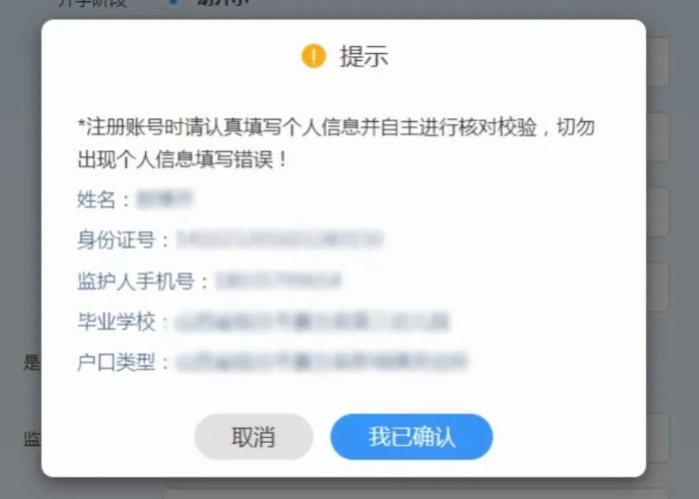 第四步:请认真确认注册信息是否正确,正确请点击我已确认;错误或需修改请点击取消。一经注册,信息不可修改,如要修改请联系教科局。