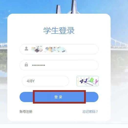 第五步:注册完成后,输入账号(账号为学生身份证号)、密码和验证码,点击登录,进入系统。