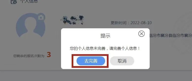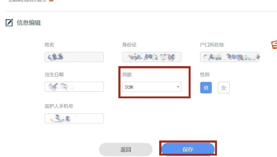 第六步:点击【去完善】,补充个人信息中的民族,点击【保存】,信息修改/完善成功。