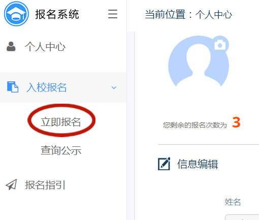 第七步:点击左侧【入校报名——立即报名】
