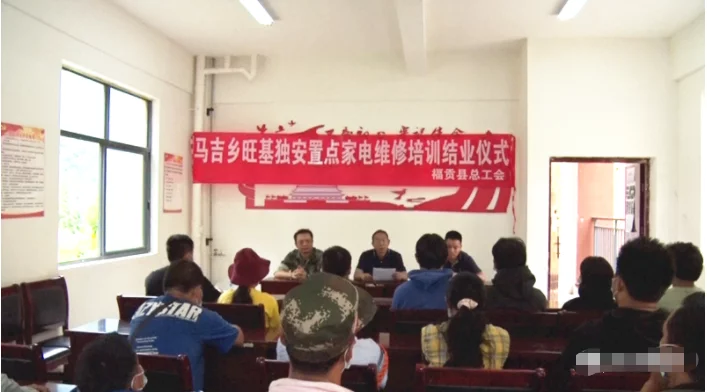 8月25日,为期12天的旺基独安置点家电维修技能培训班正式结业,这也标志着福贡县总工会举行的2021年易地扶贫搬迁安置点保洁员、酒店服务、缝纫、家电维修培训班圆满结束。