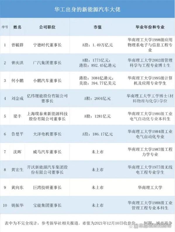 从上图中,我们其实也可以找到例证,行业领军人物中,有2位出自于电气自动化专业,2位出自计算机专业,2位出自电子信息类专业,1位来自材料专业,有意思的是,车辆工程专业和新能源相关专业居然没有,还有2位出自管理科学与工程专业。