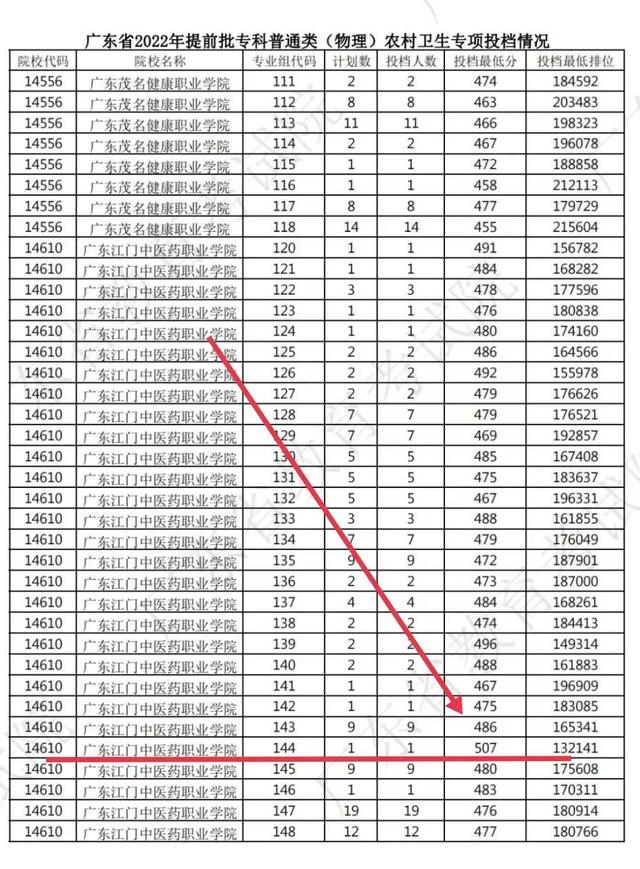 广东的四所专科院校,录取分数比部分本科院校还高,它们分别是肇庆医学高等专科学校、广东江门中医药职业学校、惠州卫生职业技术学校和广东茂名健康职业学校。这几所专科院校的物理科投档最低分数线,均在500分以上,比一些本科院校高出几十分。